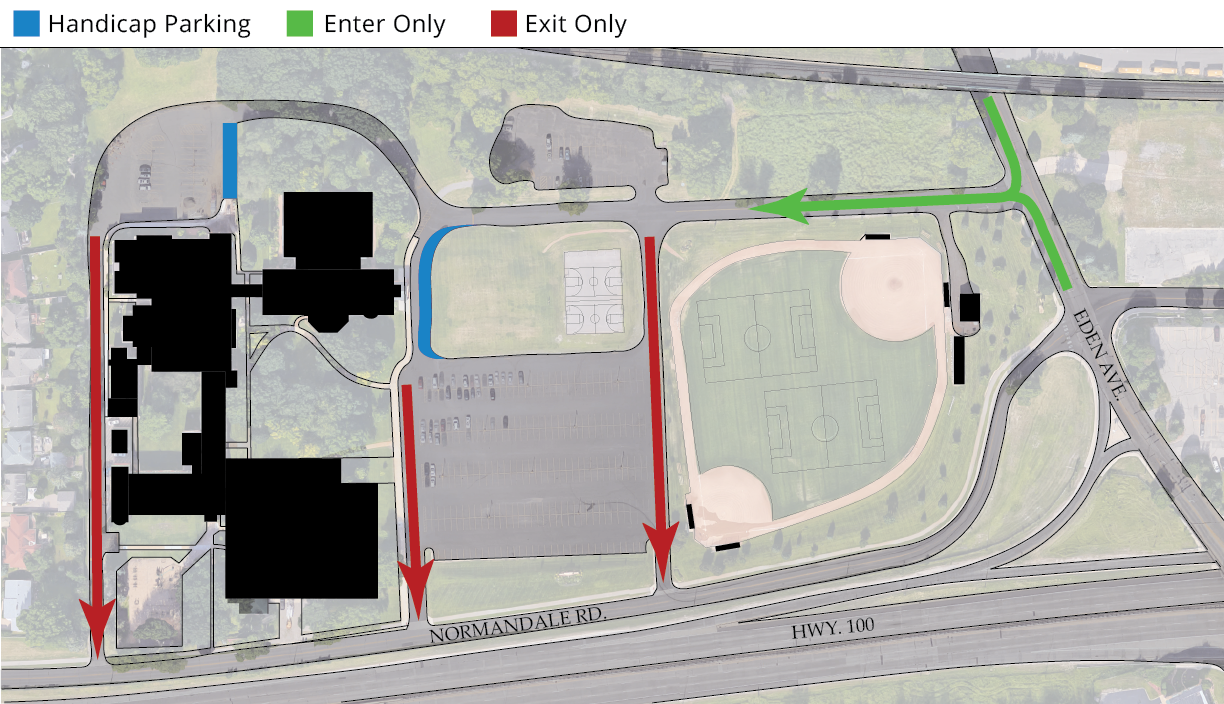 Please enter via Eden Avenue and exit via the frontage road.